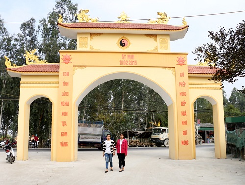 Niên thịnh vượng phúc thọ vô biên. Khi xây dựng cổng chào này người ta sẵn sàng bẻ cong một đoạn quốc lộ. Tết đẹp mãi trường xuân.